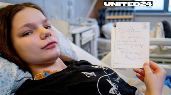Американська акторка Анджеліна Джолі зателефонувала та передала записку зі словами підтримки 14-річній Поліні з Харківщини. У лютому 2025 року Поліна зазнала поранень внаслідок російського ракетного удару. Через травми дівчина тимчасово не може ходити.