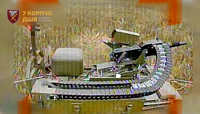 За даними корпусу, наземний роботизований комплекс (НРК) “Кур’єр” виявили під час патрулювання сектору, коли він намагався проїхати рівнинною місцевістю та наблизитися до оборонних позицій ЗСУ поблизу Покровської агломерації. Його оперативно вразили представники підрозділу безпілотних систем 32-ї бригади.