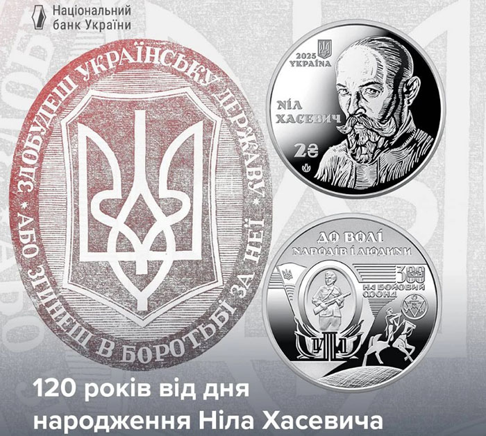 Зазначається, що монета присвячена легенді українського підпілля, видатному художнику-графіку та учаснику національно-визвольного руху, який перетворив мистецтво на потужну зброю в боротьбі за свободу України, – Нілу Хасевичу.