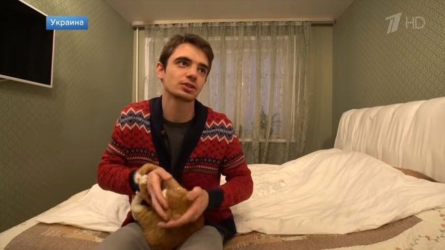 "На 8:32 там появляется некий молодой человек, которого "Первый канал" называет участником Евромайдана Кириллом Чубенко, не поясняя, впрочем, где этот Кирилл живёт и чем занимается, - комментирует телесюжет Илья Варламов. - На видео Кирилл трогательно тискает кота и рассказывает, что они с котом сейчас замерзают, и всё это из-за Евромайдана", - говорится в его сообщении.