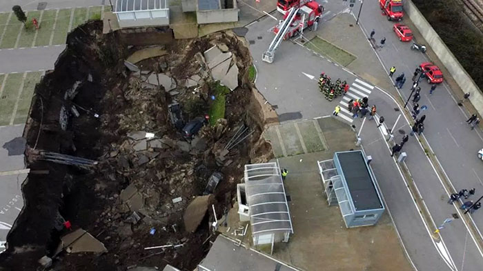 В результате на месте автостоянки образовалась гигантская воронка.