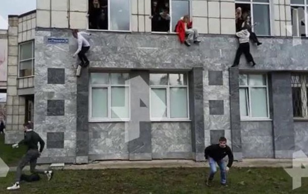 В соцсетях публикуют видео, как студенты выпрыгивают из окон здания университета. Другие студенты закрылись в аудиториях.