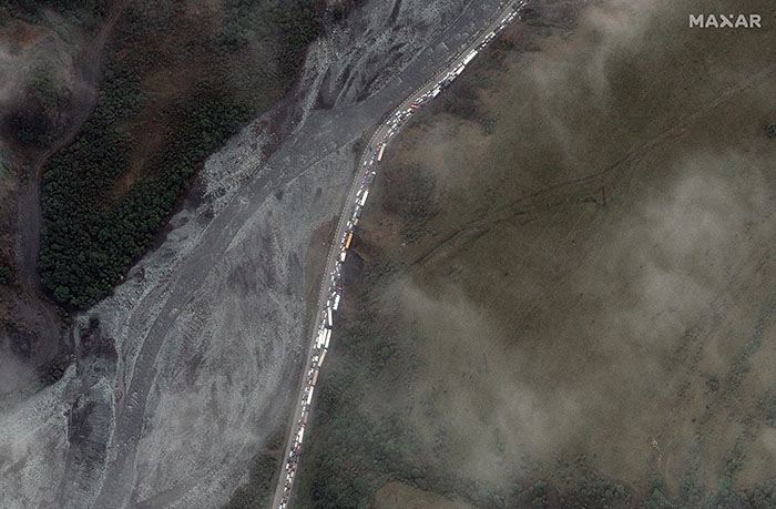 Американська аерокосмічна компанія Maxar Technologies, яка, зокрема, спеціалізується на спостереженні за Землею, показала супутникові знімки багатокілометрових заторів на кордоні рф та Грузії після указу путіна про часткову мобілізацію.