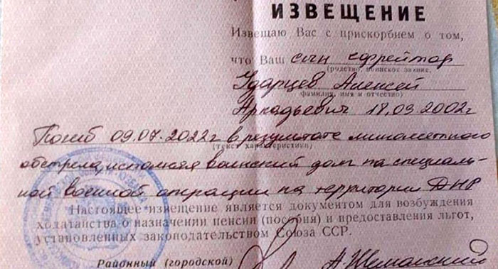 росія стрімко крокує до back in USSR у повному сенсі цього слова, прямо у застійні 70-ті, чому активно сприяє маразматичний диктатор пенсійного віку. І для додаткового занурення у ті часи росіяни почали отримувати "похоронки", які були надруковані у СРСР ще у 1974 році.