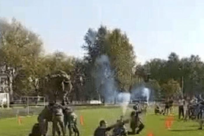"Маленькі діти кричали хапалися за голови і падали на землю. Не обійшлося без поранень. Дитина отримала серйозне пошкодження від гільзи, що відскочила", - йдеться в описанні до відео.