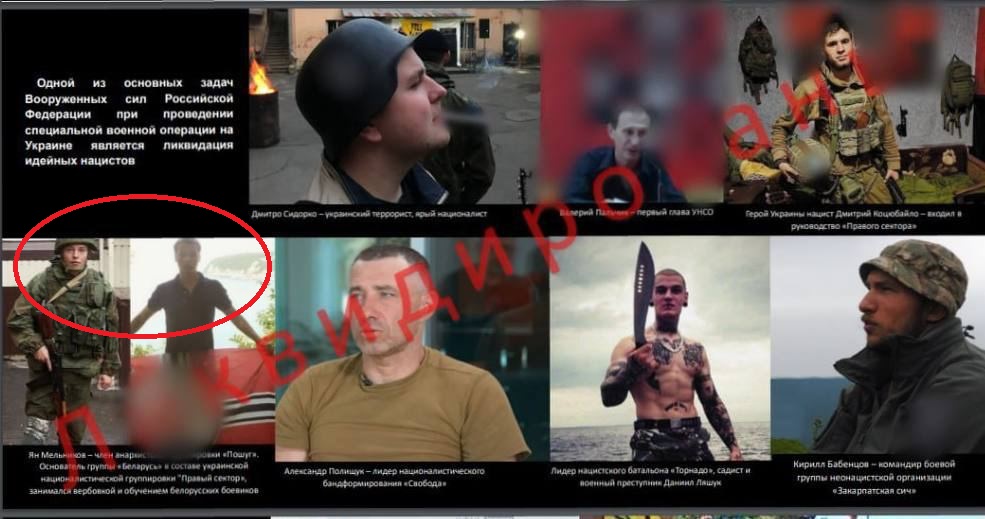 У ній фотографією російського неонациста було проілюстровано текст: "Ян Мельников - член анархічного угруповання "Пошуг". Засновник групи "Білорусь" у складі українського націоналістичного угруповання "Правий сектор", займався вербуванням і навчанням білоруських бойовиків". Представники МЗС поширювали брошуру серед російських військових, але заперечували, що мають стосунок до її виготовлення.