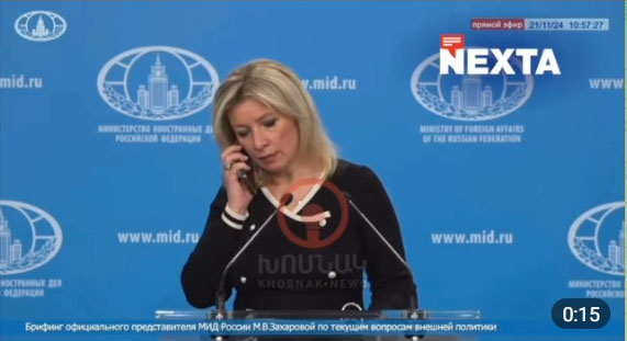 Спікерці МЗС Росії Марії Захаровій під час сьогоднішнього брифінгу зателефонували із завданням не давати коментарів щодо удару по Україні міжконтинентальною балістичною ракетою.