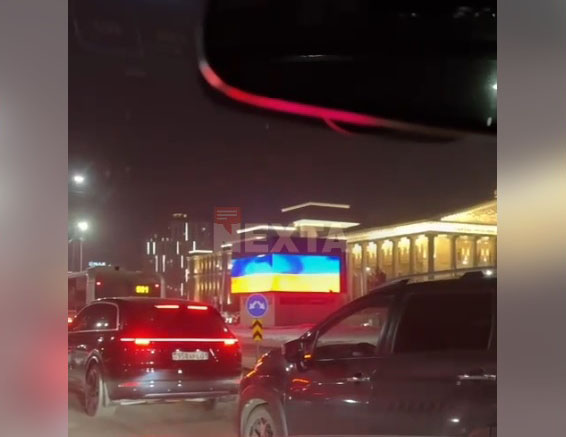 Напередодні, у день візиту Володимира Путіна до Астани, у соцмережах поширилися кадри того, як на екрані поряд із театром «Астана Опера» з'явився прапор України замість російського. Екран невдовзі відключили – зараз він не працює.