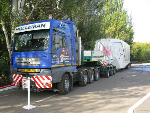 Автопоезд с ВЭУ отправился из Краматорска в далекий путь.