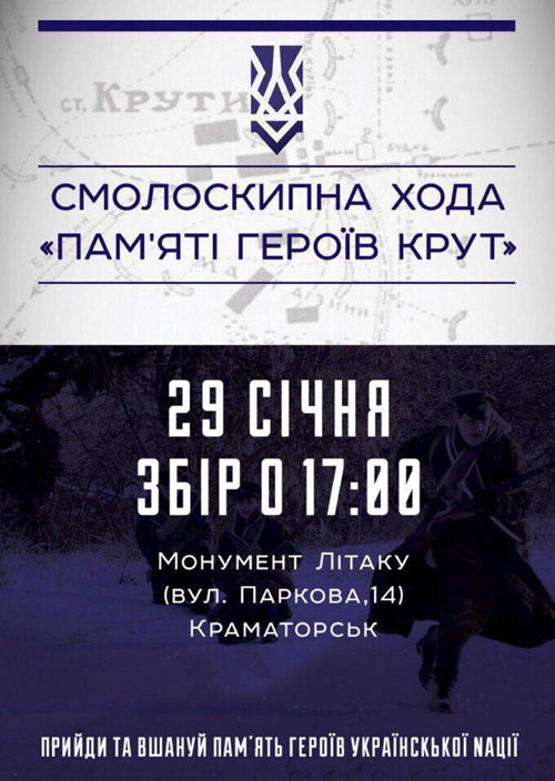 Завтра. 29 января, в Краматорске состоится факельное шествие в честь памяти героев Крут. Организатором мероприятия выступает Национальный корпус "Донетчина".