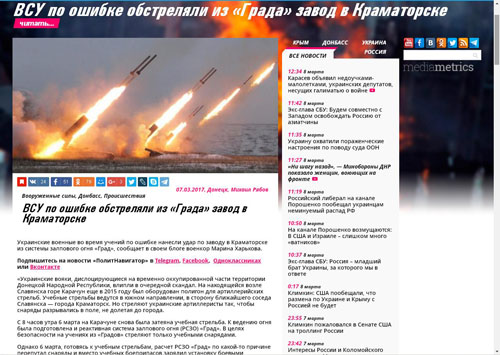 Антиукраинская пропаганда в электронных СМИ записала в свой актив очередной перл, явно рожденный в результате алкогольной интоксикации: оказывается, 6 марта артиллерия Вооруженных сил Украины "по ошибке" обстреляла завод "Энергомашспцсталь".