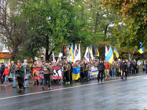 В Краматорске 14 октября состоялся марш молодых украинских националистов, посвященный бойцам УПА и украинского казачества.