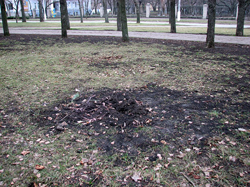 "Свежие" ямки в земле - вот и все, что осталось в предновогодние дни от трех сосен, высаженных в Краматорске 6 декабря на Аллее памяти защитников Украины.