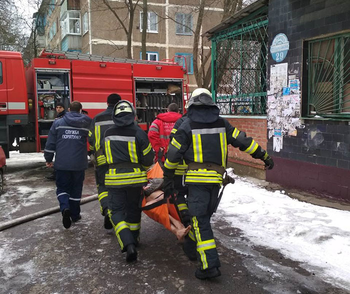На месте происшествия выяснилось, что пожар происходит в квартире на 5-м этаже пятиэтажного жилого дома, наблюдается плотное задымление. Во время тушения пожара в одной из комнат на полу были обнаружены мужчина и женщину в бессознательном состоянии. Бойцы ГСЧС вынесли пострадавших на свежий воздух и передали их сотрудникам "Скорой помощи". Пострадавшие, в тяжелом состоянии, были госпитализированы в городскую больницу № 3.