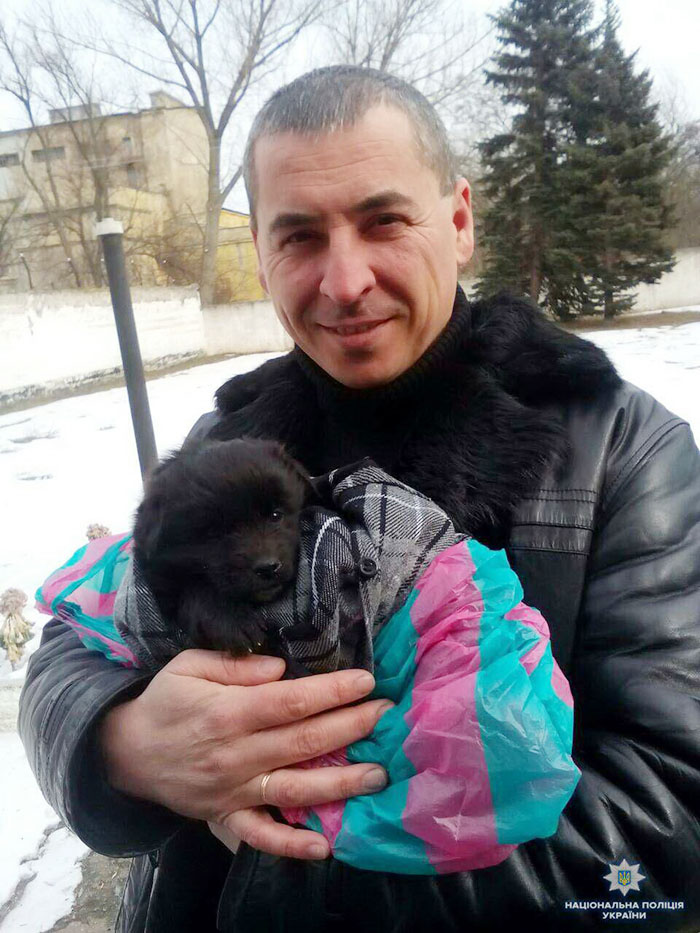 Во время обхода территории обслуживания, внимание старшего участкового Краматорского отдела полиции Максима Шнейдера привлек тихий скулеж собаки, доносившийся из-под бетонной крышки на земле. Заглянув в щель, полицейский увидел в люке маленького щенка, который плавал в заполненном водой колодце. Времени на размышления не было, потому операцию по спасению пришлось проводить немедленно и без подручных средств.