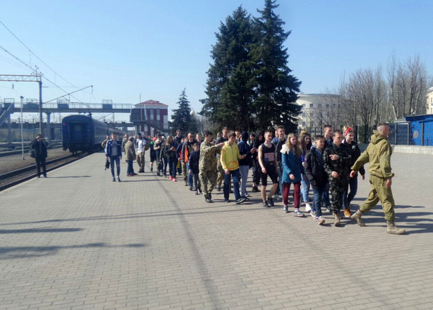 15 апреля на железнодорожный вокзал Краматорска прибыл агитпоезд "Единение Украины «Труханівська Січ», задача пассажиров - развитие культурных связей людей из разных регионов нашей страны.