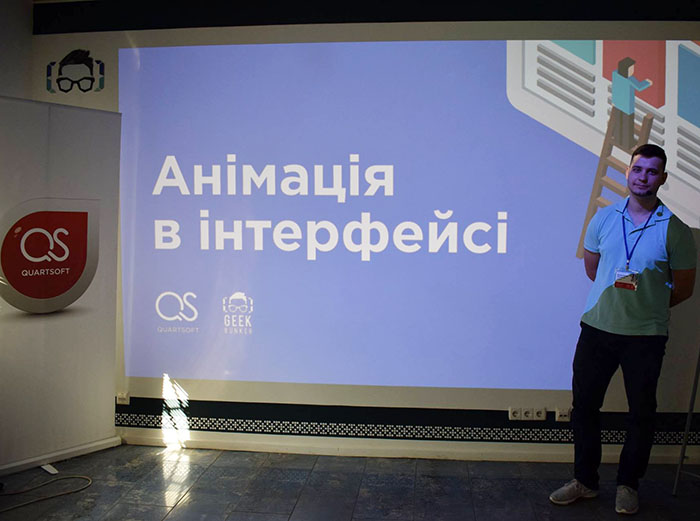 27 апреля веб-дизайнер компании Quartsoft Ukraine Александр Тоичкин на встрече с молодыми людьми, которые интересуются дизайном, поделился своими знаниями об анимации интерфейса пользователя.