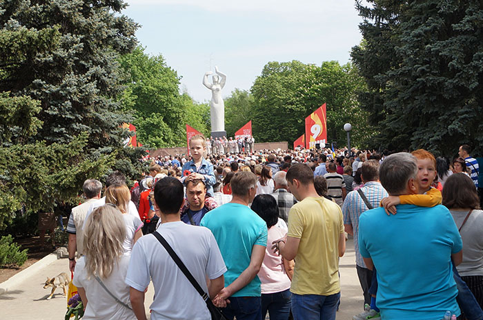 Сегодня, 9 мая, в Краматорске, у Вечного огня (в котором в честь праздника снова появилось пламя) прошел митинг, собравший тысячи краматорчан.