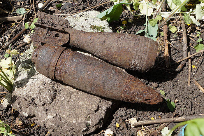 Естественно, на место находки вызвали полицию и специалистов взрывотехнической службы. Выяснилось, что найденные предметы - это неразорвавшийся бронебойный снаряд и хвостовик от минометной мины калибра 51 мм времен Второй Мировой войны.