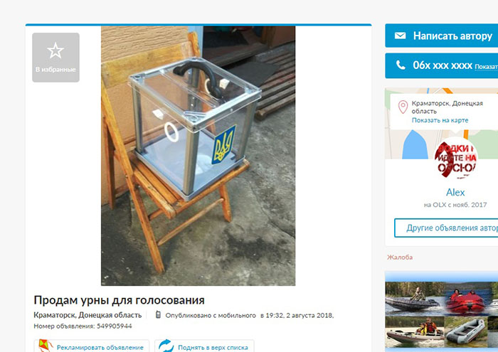 Необычное объявление появилось вчера, 2 августа, на популярном торговом интернет-ресурсе: в Краматорске продаются... урны для голосования.