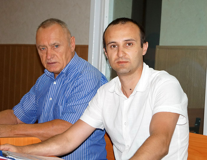 На фото: Владимир Азарянц (справа) и адвокат Анатолий Рябошапка в зале суда