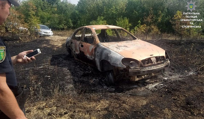 30 августа на линию 102 позвонил гражданин, сообщивший, что поле неподалеку от Новоселовка, неподалеку от Краматорска. он обнаружил сгоревший автомобиль Daewoo Lanos.