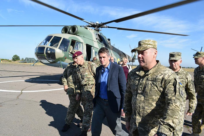 Сегодня, 19 сентября, британский госсекретарь по вопросам обороны Гэвин Уильямсон побывал на передовых рубежах и на одном из КПВВ.