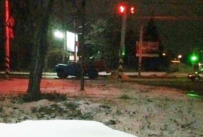 В социальных сетях Краматорска обсуждается фото, сделанное Андреем Тихоновым ночью 23 ноября в районе пересечения улиц Парковой и О. Тихого. По информации автора, он стал свидетелем того, как грузовик "ЗиЛ", занимавшийся посыпкой дороги, буквально "сложился" пополам.