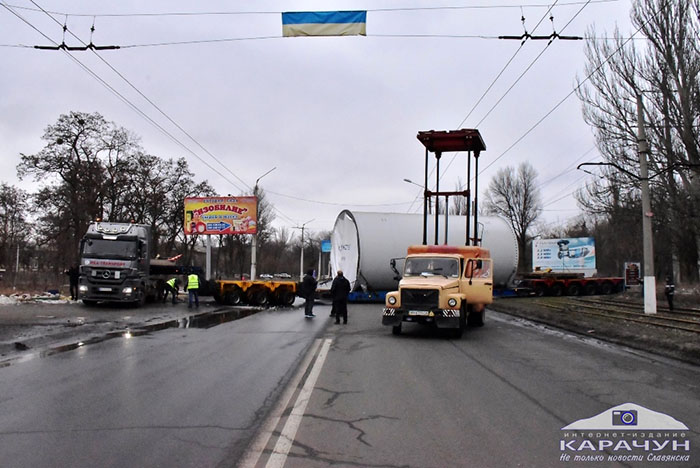 Сегодня, 16 февраля, завод «Фурлендер Видтехнолоджи» отправил к месту монтажа первый элемент строящейся в районе поселка Ясногорки ветроэнергетической установки. Для его вывоза с территории завода, пришлось перекрыть автомобильное и троллейбусное движение по магистральной улице О. Тихого, из-за чего на дороге образовался впечатляющий затор.