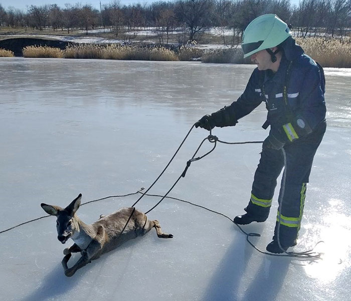 Как сообщает пресс-служба ГУ ГСЧС в Донецкой области, утром 19 февраля в Службу спасения «101» поступило сообщение от жителя Краматорска, который звонил с берега Маячковского водохранилища. По словам мужчины, он увидел, что на льду, примерно в 150 метрах от берега, находится косуля.