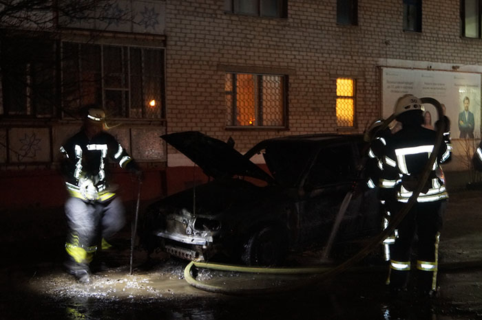 Около 6 часов вечера 5 марта на телефон Службы спасения поступило сообщение о возгорании автомобиля посреди двора 9-этажного дома на улице Академической, 12 в Краматорске.