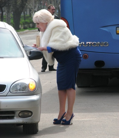 Как обычно, всеобщее оживление вызвало появление мэра Славянска Нели Штепы. Блондинка выпорхнула из авто, и тут же на ее свет потянулись коллеги из окрестных городов. Шикарная меховая пелерина оттеняла ярко-синее платье хозяйки Славянска, и весь этот ансамбль заканчивался сиянием зеркальных каблуков туфель Нелли Штепы.