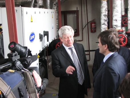 Первым объектом стала теплонасосная установка для нужд горячего водоснабжения по улице 1 Мая, в старой части города. Нужно сказать, аппарат этот, ценой в 4,5 миллиона гривен уникальный: использует неочищенные канализационные стоки для отопления 6 многоэтажных домов. На станции чисто, нет никакого запаха.