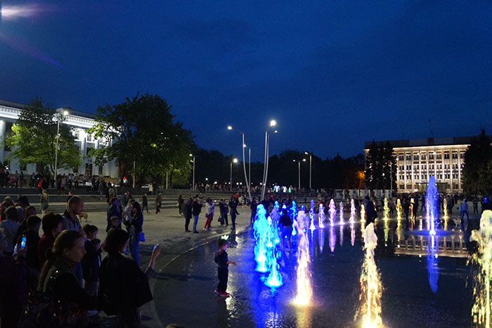 Вечером 8 мая на центральной площади Краматорска собрались сотни горожан, чтобы полюбоваться на зрелище открытия сезона фонтанов.