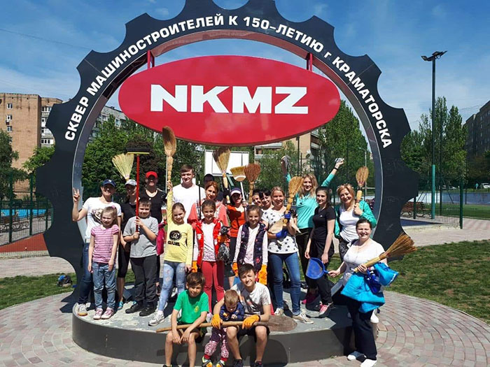 Этот объект Новокраматорский машиностроительный завод торжественно подарил городу в июне 2018 года. Однако ничто не вечно, и сквер с его сооружениями остро нуждался в генеральной уборке и кое-каким ремонте. Местные жители бросили клич в соцсетях - и в воскресенье на детско-спортивной площадке закипела работа.