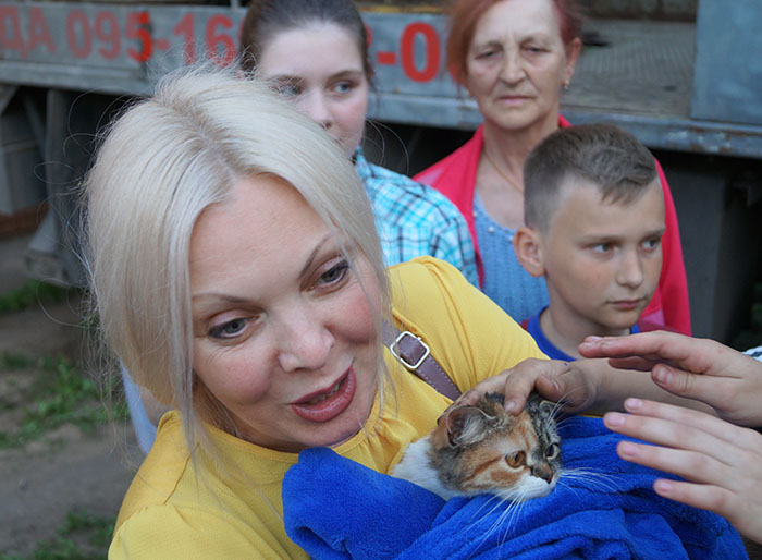Процедура была весьма и весьма сложной: не сумев найти общий язык с профессиональными спасателями, жители, наконец, отыскали контакты краматорского Фонда зашиты животных "Друг". По словам его руководителя Натальи Титомир, по ее просьбе, на место происшествия дважды выезжали бригады рабочих с автовышкой, однако высота старого тополя оказалась такой, что "дотянуться".до источника отчаянного мяуканья они не смогли.
