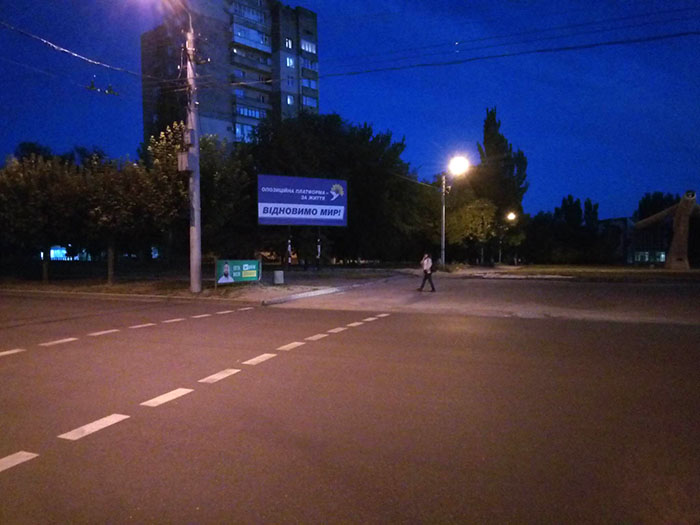 Вечером 4 июля дорожные ограждения, примыкающие к памятнику "Самолет", оказались увешенными политической рекламой залетного для Краматорска столичного господина, представляющего так называемую "команду Зе".