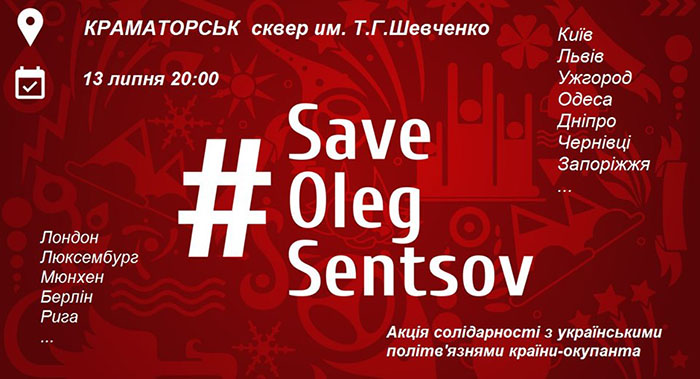 13 липня о 20:00 краматорськи активісти та небайдужі громадяни влаштовують в сквері ім. Т. Г. Шевченко громадський вечірній захід, щоб згадати та нагадати про наших співгромадян, які незаконно утримуються у російських в’язницях.