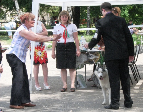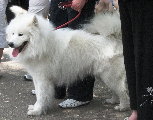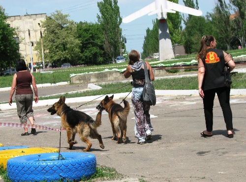 Не могу похвастать познаниями в кинологии, поэтому судить о достоинствах и недостатках участников выставки не берусь. Субъективно: выставке в немалой степени помешала жара. Мучились владельцы, мучились собачки, - а ну-ка, побегай, да еще красиво, по раскаленной асфальтовой площадке при плюс 30!