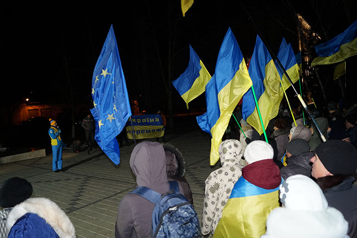 Вечером 21 ноября в центре Краматорска, у памятника Шевченко, состоялось гражданское вече - сбор граждан, которые самостоятельно, по велению сердца, решили собраться, чтобы отметить День Достоинства и Свободы, вспомнить былые трагические и героические события на Майдане Незалежности и обсудить нынешнюю ситуацию в стране.