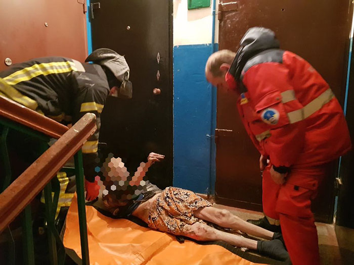 Во время проведения разведки и тушения пожара, в квартире был обнаружены мужчина. Спасатели вынесли его на свежий воздух и передали сотрудникам "скорой помощи".