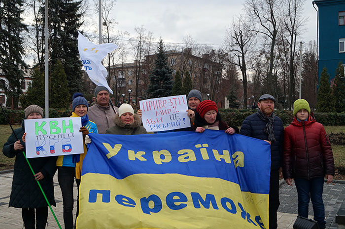Открывая акцию, глава местной организации политической партии "Демократична сокира" Юрий Требач заявил: да, эта, краматорская, и другие подобные акции, которые проходят сегодня во многих городах Украины - это давление на Владимира Зеленского, и предостережение, потому что цена вопроса - слишком высока: это будущее Украины.