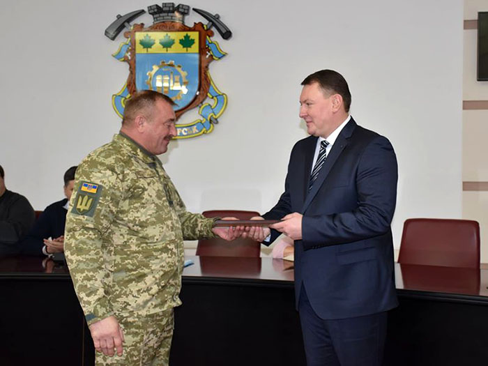 Соответствующие документы мэру вручил лично Владимир Кравченко, который поблагодарил Андрея Панкова. Тот ответил по Уставу: "Служу украинскому народу".