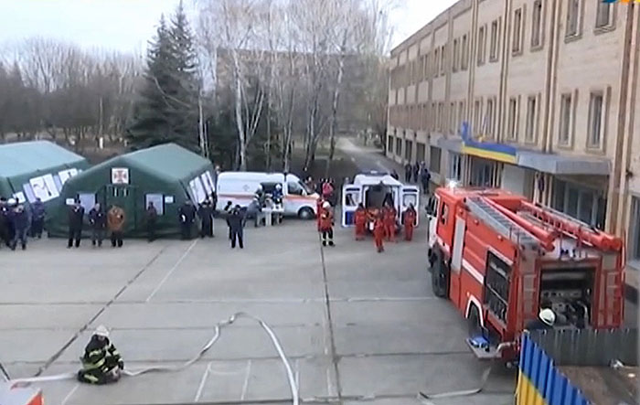 В Краматорске, на базе Межрегионального высшего профессионального строительного училища по улице Парковой, прошли учения оперативных служб.