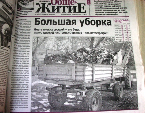 20 июля 2009 года, моя же заметка «Большая уборка», в которой сообщается, что утром этого дня окна двухкомнатной, превращенной хозяином в мусорник, квартиры в доме № 35 по улице Парковой, распахнулись, и оттуда на землю стали вылетать целые кучи всякого хлама. А затем то ли сам хозяин, то ли кто-то хулиганствующий все это добро поджог, и «огромный костер и клубы удушливого дыма едва не отправили на тот свет жильцов нижних этажей. Причем в этих квартирах живут, преимущественно, люди очень пожилого возраста».