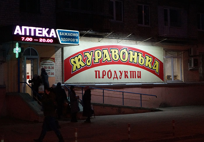 А после обеда в редакцию обратилась читательница, и сообщала следующее: сегодня она посетила продуктовый магазин "Журавушка", расположенный в старой части Краматорска, на улице Северской, 41, и там обратила внимание на информацию, звучащую из колонок:
