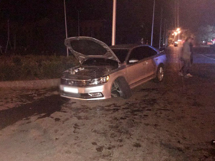 Около 22.40 водитель автомобиля "Фольксваген", двигаясь с явным превышением скорости, не справился с управлением и врезался в бордюрный камень.