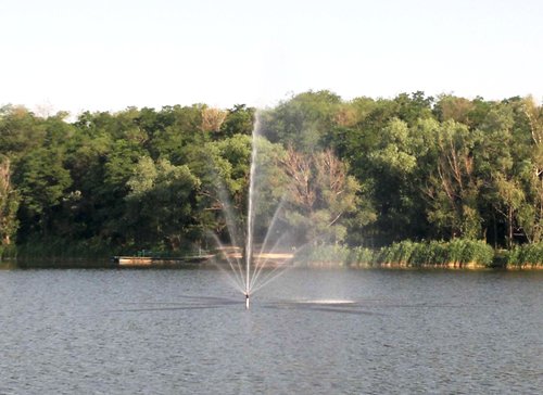 Фонтан со множеством раструбов, бьющий на высоту до 15 метров, был изготовлен и установлен посреди озера работниками ООО «Тяжпромкомплекс». По словам генерального директора предприятия Валерия Карпенко, сооружение выполняет двойную функцию: это и эстетическое удовольствие для отдыхающих, и мощный аэратор озерной воды, благодаря чему рыба чувствует себя комфортней.
