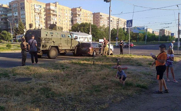 Около 8 часов вечера 2 июля в Краматорске, на пересечении улицы Парковой и бульвара Краматорского, произошло дорожно-транспортное происшествие с участием автомобиля военных.