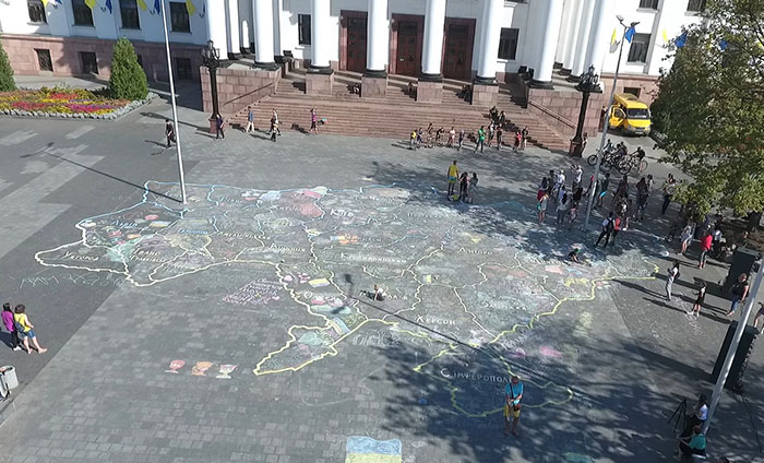 Карта создавалась на главной площади Краматорска весь день 24 августа. На площадь был нанесен контур Украины и границы областей. Во второй половине дня все желающие смогли принять участие в ее раскраске. Всего в создании карты приняло участие более 200 человек. В итоге размер рисунка составил 45 на 45 метров.